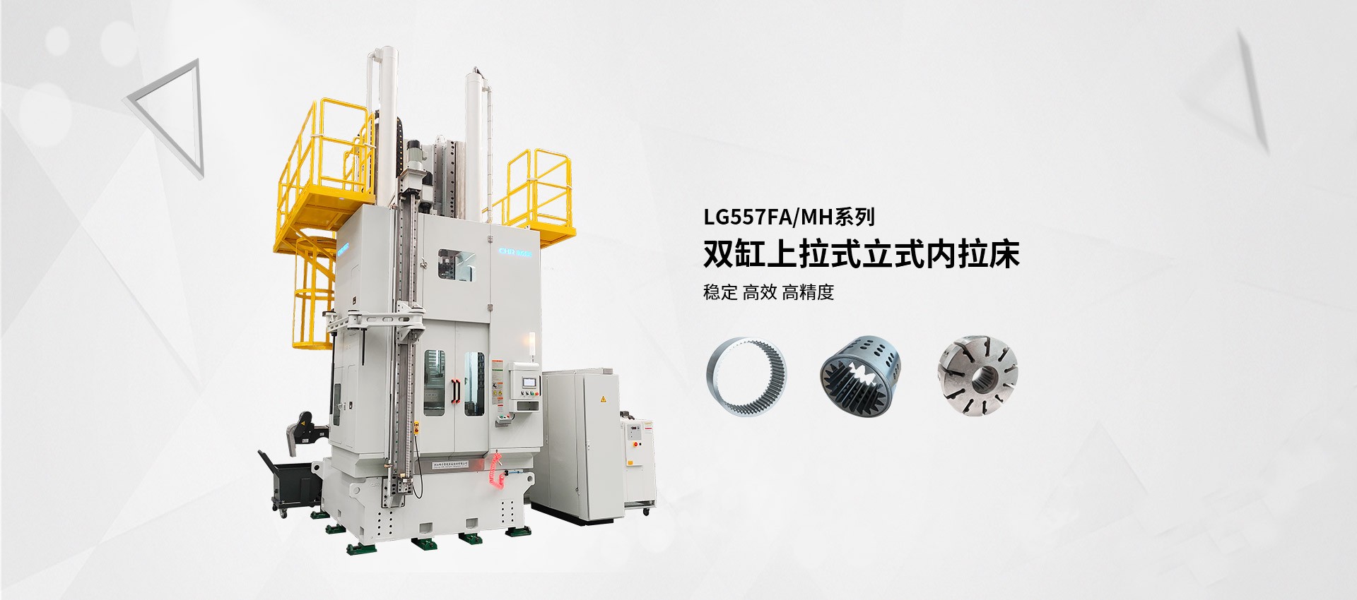 汽車工業適用于汽車核心零件部件的精密加工,如汽車盤式制動器總成、瓦蓋、連桿、傳動軸、轉向節等,三葉梅花孔的拉削加工。